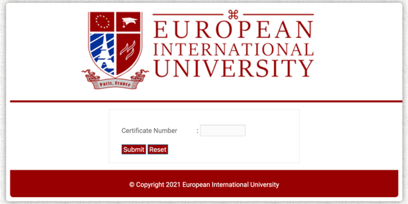 EUROPEAN INTERNATIONAL UNIVERSITY - CERTIFICATE VERIFICATION
